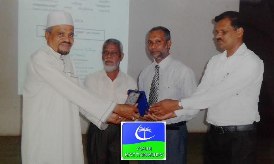 அதிபர் எம்.எஸ்.எம்.ஸஹீர், உப அதிபர் எம்.இல்யாஸ் உட்பட ஆசிரியர் மாணவர்களிளால் அண்மையில் கல்லூரி ஒன்று கூடல் மண்டபத்தில் வைத்து மேற்படி விருது காத்தான்குடி மௌலவி பௌஸூக்கு வழங்கி வைக்கப்பட்டது.