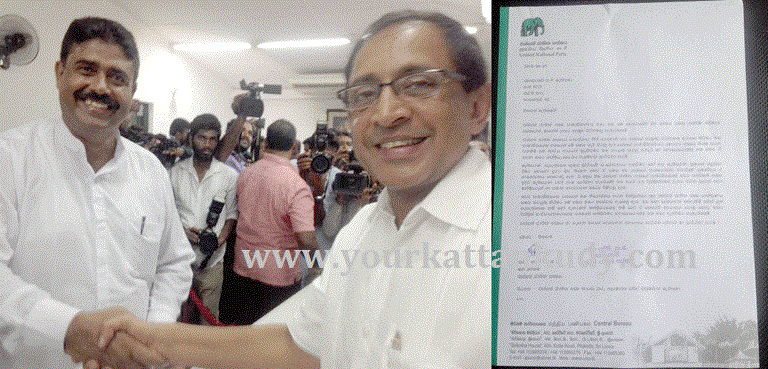 ஐ.தே.கட்சியின் பொதுச் செயலாளர் கபீர் எம். ஹாசிம், ஜனநாயகக் கட்சியின் முன்னாள் மட்டக்களப்பு மாவட்ட அமைப்பாளர் எம்.எஸ்.எம். சாபிக்கு கடந்த 2016.06.27ம் திகதி வழங்கிய கடிதம் இத்துடன் இணைக்கப்பட்டுள்ளது. அதன் தமிழ் மொழிபெயர்ப்பு வருமாறு: