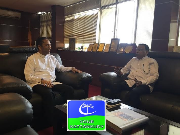 கொழும்பு: சவூதி அரேபியாவின் ஜித்தாவுக்கான புதிய consulate general ஆக ஜனாதிபதி மைத்திரிபால சிறிசேனவினால் நியமிக்கப்பட்டுள்ள பைசல் மக்கீன், புனர்வாழ்வு மற்றும் மீள்குடியேற்ற இராஜாங்க அமைச்சர் எம்.எல்.ஏ.எம்.ஹிஸ்புல்லாஹ்வை இன்று சந்தித்து கலந்துரையாடினார். இன்று புதன்கிழமை இராஜாங்க அமைச்சின் காரியாலயத்தில் இடம்பெற்ற இக்கலந்துரையாடலின் பின்னர் ஊடகங்களுக்கு கருத்துத் தெரிவித்த இராஜாங்க அமைச்சர் எம்.எல்.ஏ.எம்.ஹிஸ்புல்லாஹ்,