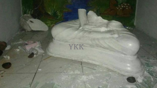 YKK/இந்த புத்தர் சிலை அடையாளம் தெரியாதவர்களினால் தாக்கி உடைக்கப்பட்டிருக்கின்றது
