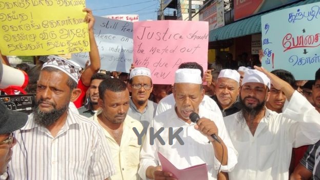 ஏறாவூர்: ஏறாவூர் பிரதேசத்தில் பெரும் பரபரப்பை ஏற்படுத்திய இரட்டை கொலைக்கு நீதி கோரி இன்று (வியாழக்கிழமை) அப்பிரதேசத்தில் மனித சங்கிலி போராட்டம் நடைபெற்றது. இந்த போராட்டத்திற்கு ஆதரவு தெரிவிக்கும் வகையில், இந்த பிரதேசத்திலுள்ள வர்த்தகர்கள் கடையடைப்பு போராட்டத்தில் ஈடுபட்டுள்ளனர். இந்த கொலையில் தொடர்புடைய சந்தேக நபர்கள் இன்று (வியாழக்கிழமை) நீதிமன்றத்தில் ஆஜர் படுத்தப்படவிருந்த நிலையில் இந்த மனித சங்கிலி போராட்டம் நடைபெற்றது.
