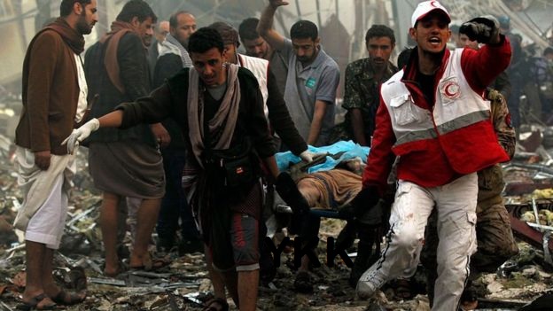 சனிக்கிழமையன்று, சனாவில் நடைபெற்ற ஒரு இறுதிச் சடங்கு நிகழ்வில் வான்வழித்தாக்குதல் நடத்தப்பட்டது.500க்கும் மேற்பட்டோர் இந்த தாக்குதலில் காயம் அடைந்திருப்பதாக ஐக்கிய நாடுகள் சபை தெரிவித்துள்ளது. ஹூதி போராளிகளுக்கு எதிராக அதிபர் அப்தராபா மன்சூர் ஹேடியின் ஆதரவோடு கடந்த ஆண்டு சவுதி ராணுவ தாக்குதலைத் தொடங்கியதிலிருந்து இதுவரை நடத்தப்பட்ட மிக மோசமான வான்வழித்தாக்குதல்களில் இதுவும் ஒன்றாகும்.