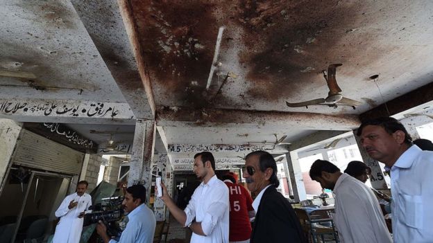 கராச்சி: தெற்கு பாகிஸ்தானில் தொலைதூரத்தில் உள்ள ஒரு மாவட்டத்தில் இருக்கும் ஒரு சூஃபி தர்காவில் சக்தி வாய்ந்த குண்டு வெடிப்பு சம்பவம் நிகழ்ந்துள்ளது. இந்தச் சம்பவத்தில், குறைந்தது 30 பேர் கொல்லப்பட்டுள்ளனர். உள்ளூர் தொலைக்காட்சியில், துறைமுக நகரமான கராச்சியின் வடக்கு பகுதியில், நூற்றுக்கணக்கான மக்கள் தொலைவில் உள்ள ஷா நூரானி வழிபாட்டுத்தலத்தில் இருந்தனர் என்று கூறுகிறது.