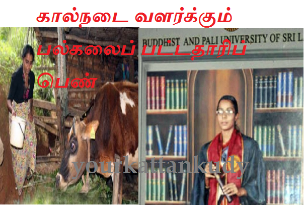 பல்கலைக்கழகத்தில் பட்டம் பெற்று தனது இளங்கலை சான்றிதழை வீட்டின் சுவரில் தொங்கவிட்டுள்ள குறித்த பெண், கணவனுக்கு உதவியாக கால்நடை வளர்ப்பு மற்றும் விவசாயத்தில் ஈடுபட்டு வருகின்றார்.தொழில் பெறுவதற்காக பல பரீட்சைகளை மேற்கொண்டிருந்த நிலையிலும் அவருக்கு எந்த தொழிவாய்ப்பும் கிடைக்கவில்லை என தெரிவிக்கப்பட்டுள்ளது.