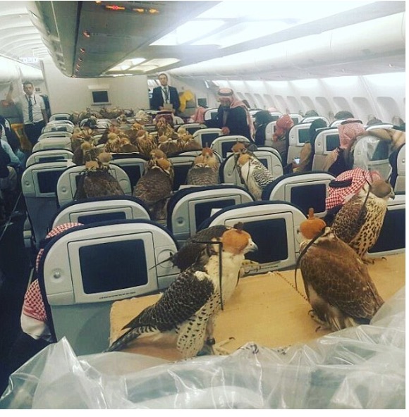 இந்நிலையில் 80 பருந்துகளுக்கும் சவூதி இளவரசர் தனி ஆசனங்களை பதிவு செய்திருந்தார். குறித்த பருந்துகளுக்கு விமானத்தின் நடுப்பகுதி இருக்கைகள் ஒதுக்கப்பட்டுள்ளன. மேலும் அவை பறக்காமல் இருக்கும் வகையில் கட்டப்பட்டிருந்துள்ளது.