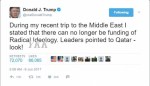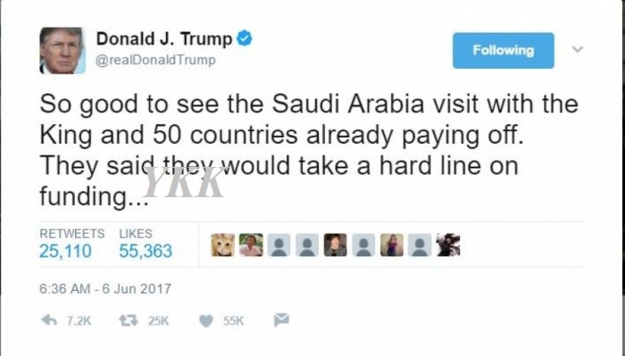 சவுதி அரேபியாவுக்கு மேற்கொண்ட விஜயத்தின் போது மேற்கொள்ளப்பட்ட முடிவே இதுவென ட்ரம்ப் குறிப்பிட்டுள்ளார். டுவிட்டர் பதிவொன்றை வெளியிட்டு அமெரிக்க ஜனாதிபதி டொனால்ட் ட்ரம்ப் இவ்வாறு தெரிவித்துள்ளார்.