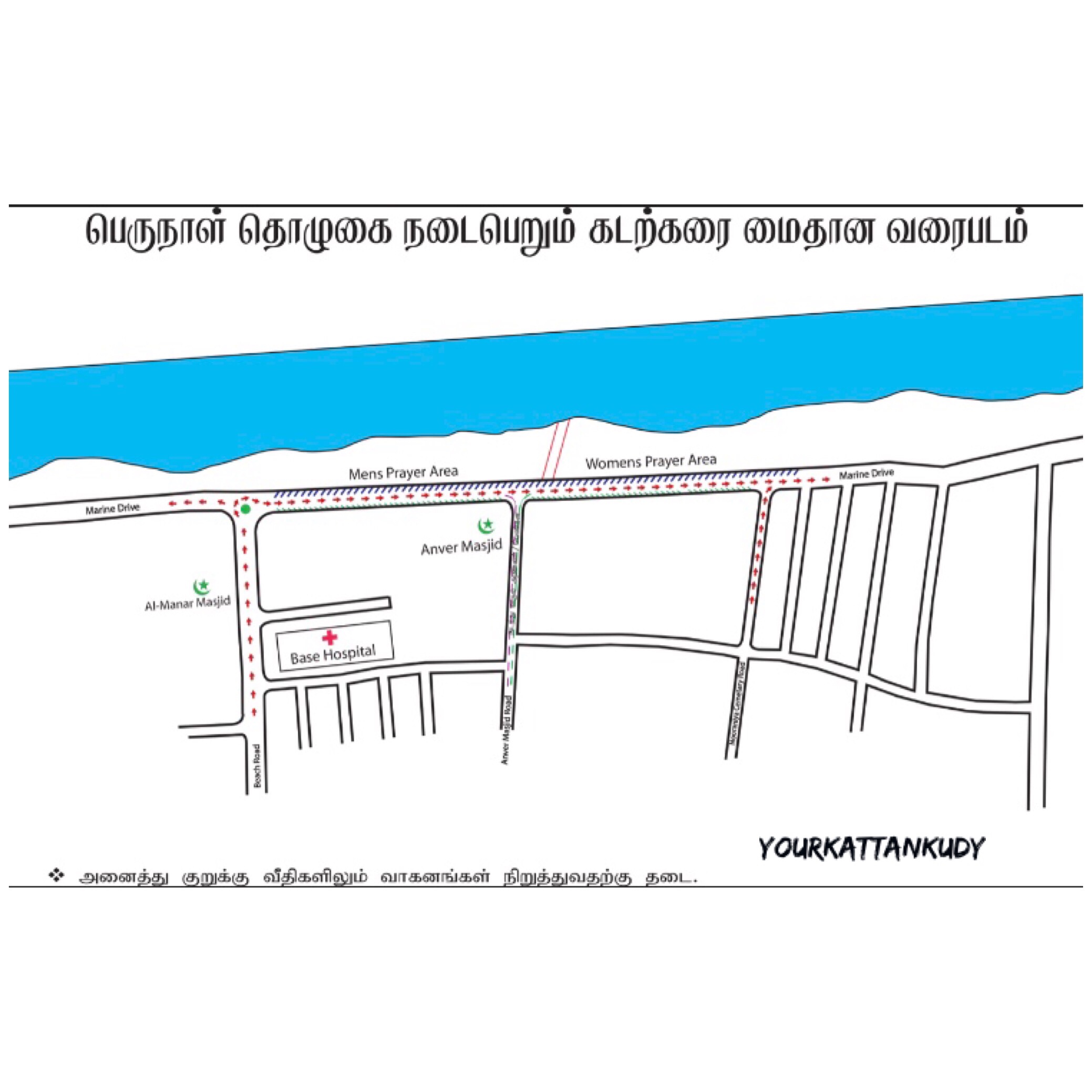 2. எமதூர் கடற்கரை பொழுதுபோக்குவதற்கான பிரதான தளமாக எம்மவர்களால் பார்க்கப்பட்டாலும் பெருநாள் தினத்தில் நீங்கள் அங்கு சமுகமளிப்பது அல்லாஹ்வைப் புகழ்ந்து அவன் கடமையாக்கிய ஓர் வணக்கத்தை நிறைவேற்றுவதற்காக என்பதை மனதில் நிறுத்தி அதற்கான பேணுதலுடன் வருகை தருவதே பொருத்தமானது.