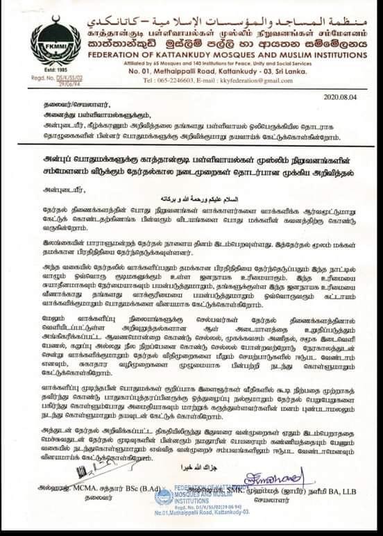 சம்மேளனத்தின் முக்கிய அறிவித்தல்